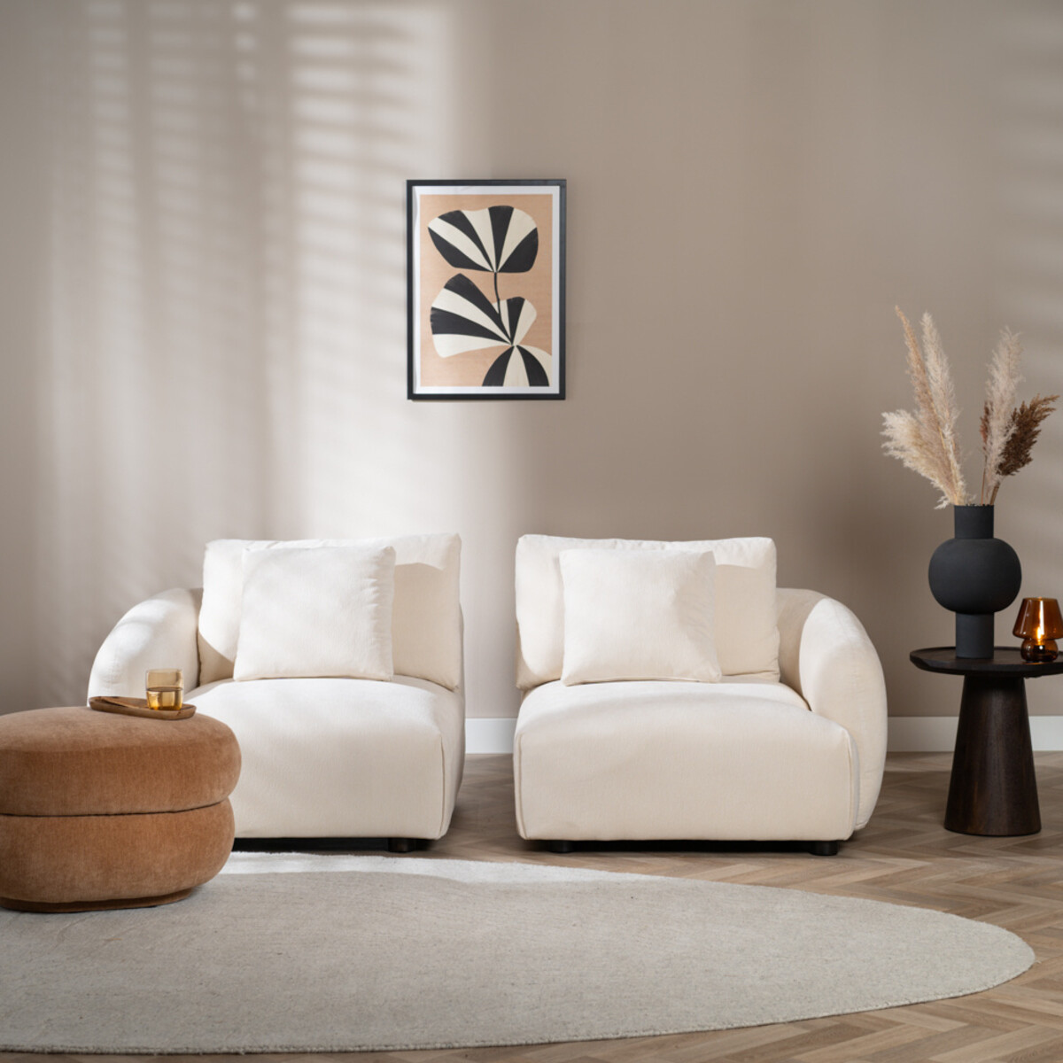 Het ronde design van deze bank voegt een speels en eigentijds element toe aan het tijdloze Scandinavische ontwerp. De off-white kleur geeft een vleugje verfijning en harmonie aan elke kamer, waardoor een uitnodigende sfeer ontstaat waar je keer op keer naar terug wilt keren. De Isa bank is een echte plofbank waar je de hele avond op kunt vertoeven. Door de chunky kussens is deze bank extra comfortabel.