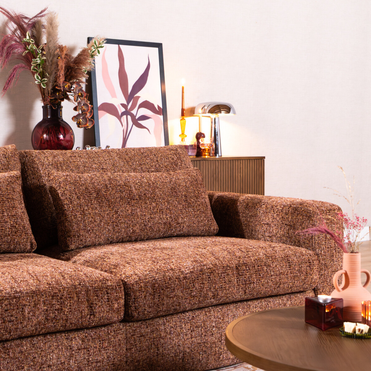 De chenille stof is eenvoudig te onderhouden. Dep gemorste vloeistoffen direct met een droge doek en vermijd wrijven of schrobben om de stof te beschermen. Wekelijks stofzuigen met een zachte meubelborstel houdt het materiaal fris en mooi. Voor diepere reiniging adviseren wij het gebruik van onze Textiel Care Kit voor het beste resultaat en langdurig behoud van de stof.