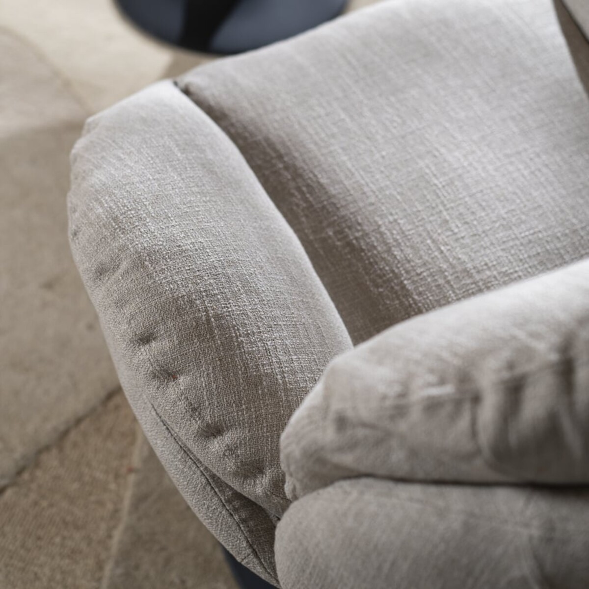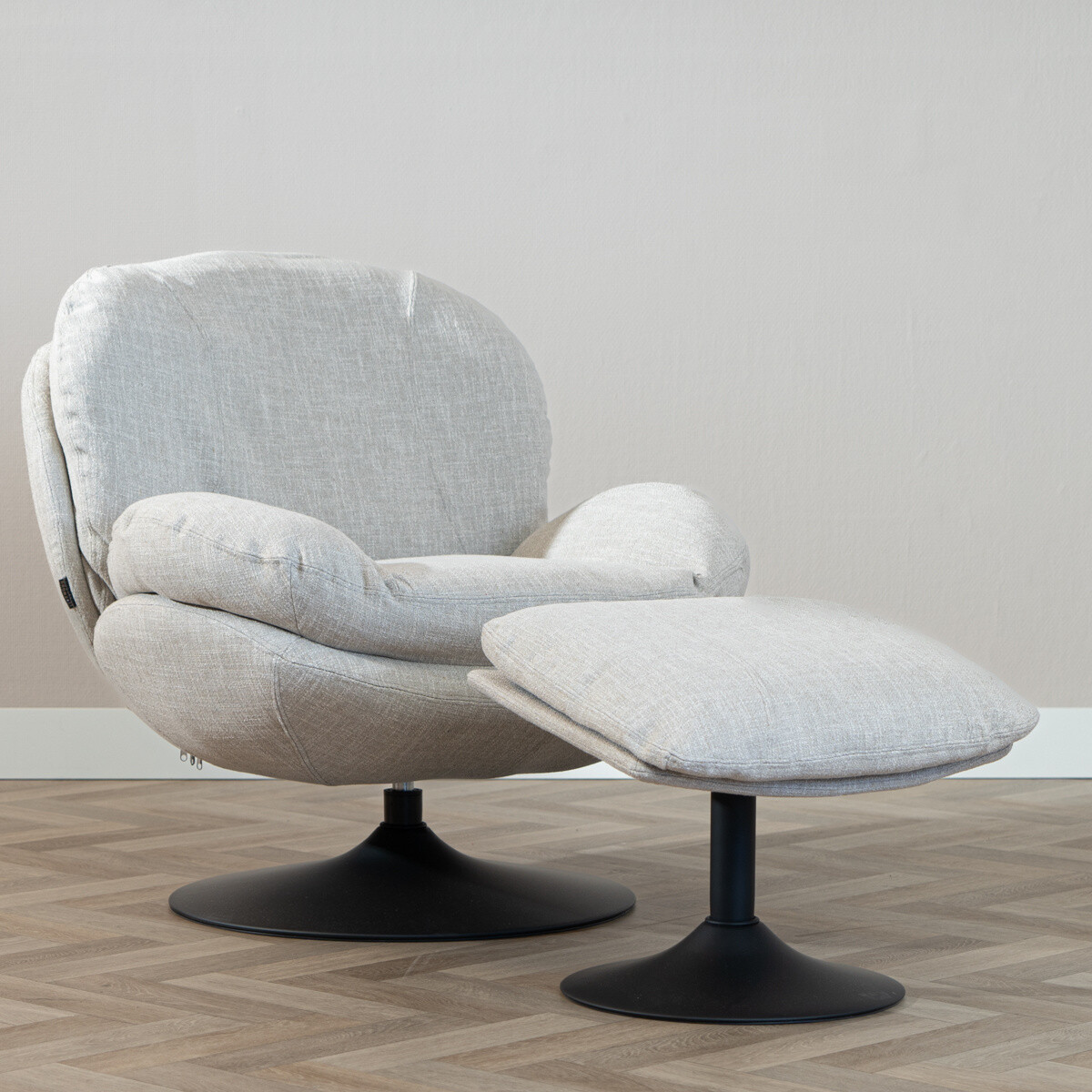 Ontdek ultiem zitcomfort met onze stijlvolle 360 graden draaibare fauteuil Isobel met hocker. Of je nu op zoek bent naar een gezellige leesplek, een chique toevoeging aan je woonkamer of een comfortabele stoel voor je studeerkamer, deze linnen fauteuil voldoet aan al je wensen en biedt de perfecte plek om tot rust te komen. De 360 graden draaifunctie geeft je de vrijheid om gemakkelijk van richting te veranderen, zodat je altijd het perfecte uitzicht kunt vinden.