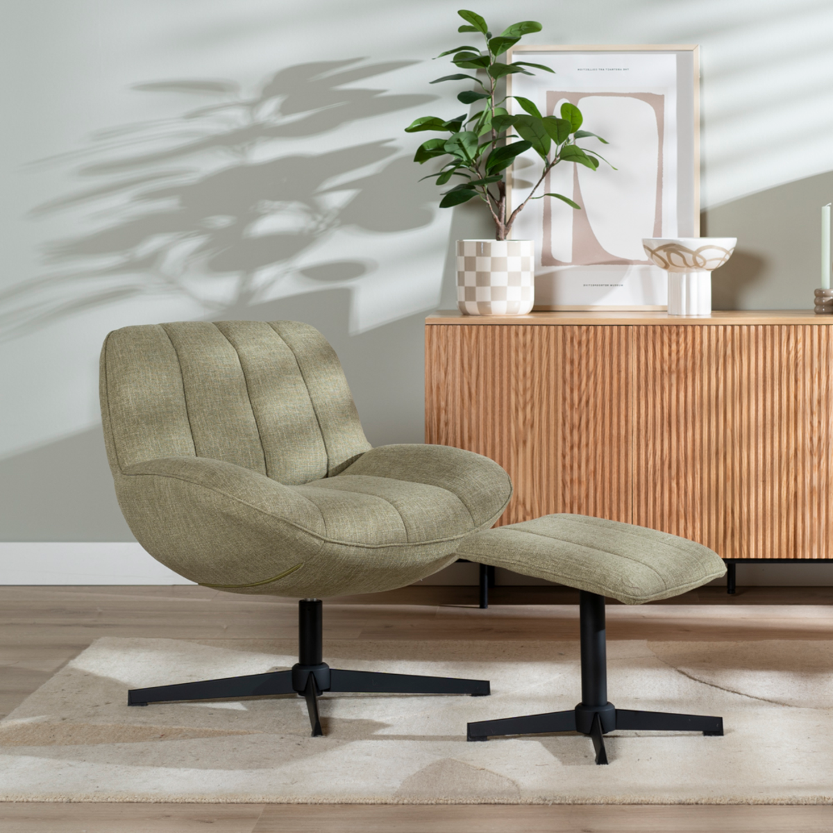 Draaifauteuil met hocker Santa linnen olijfgroen