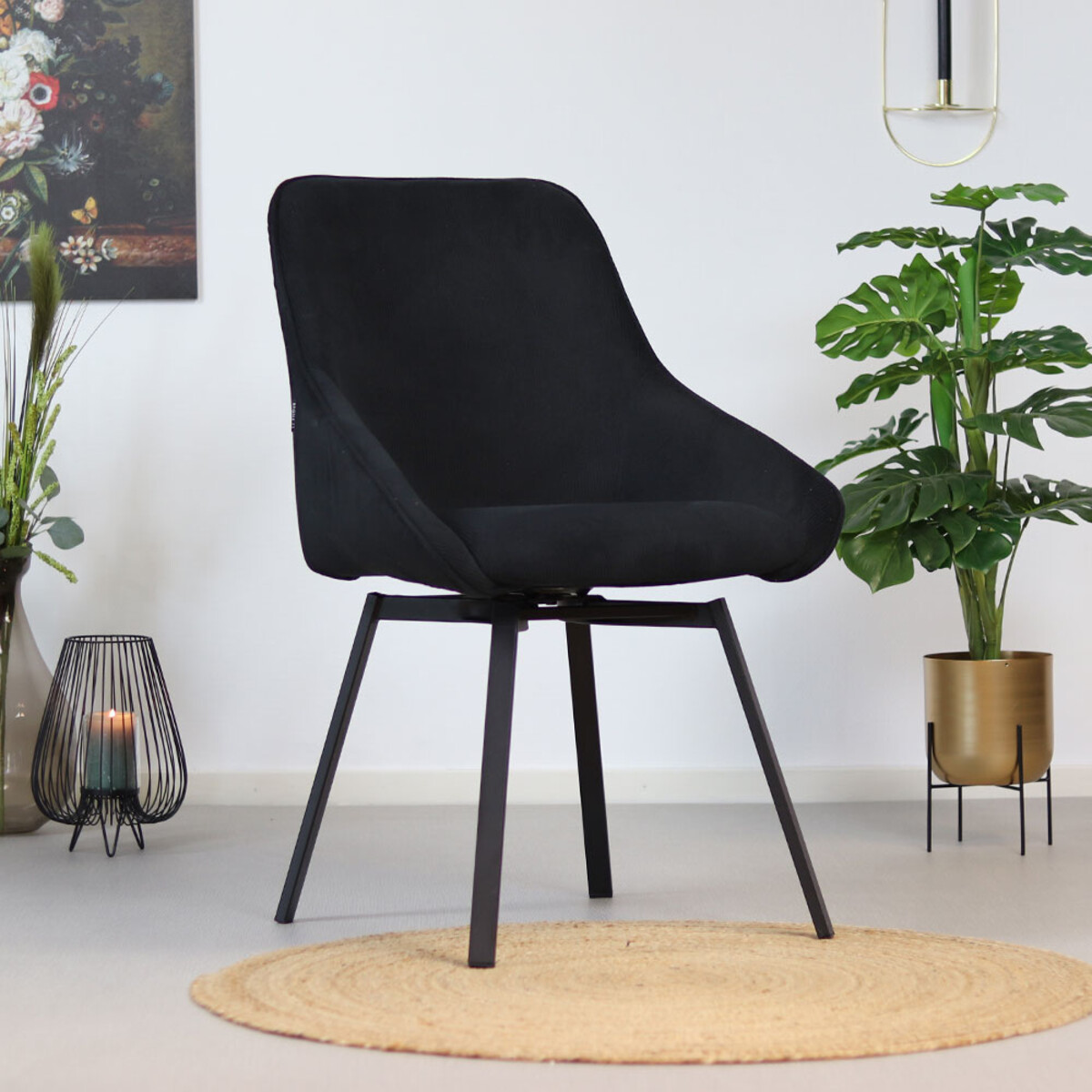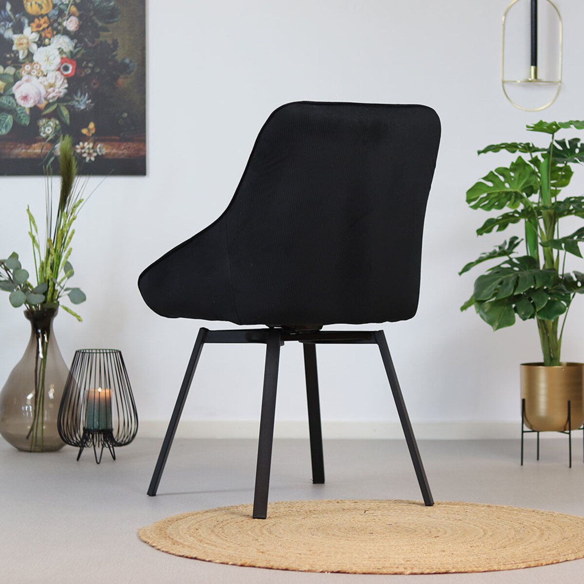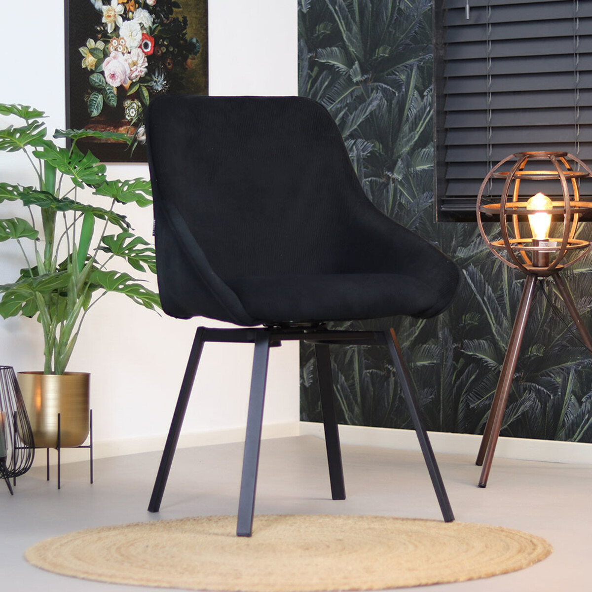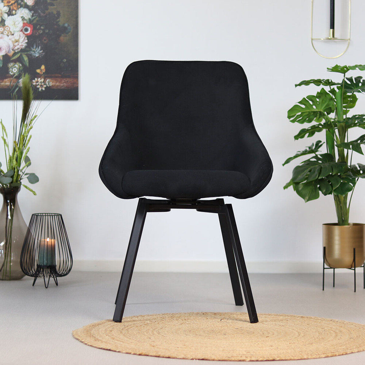 Eetkamerstoel draaibaar Luna ribstof zwart