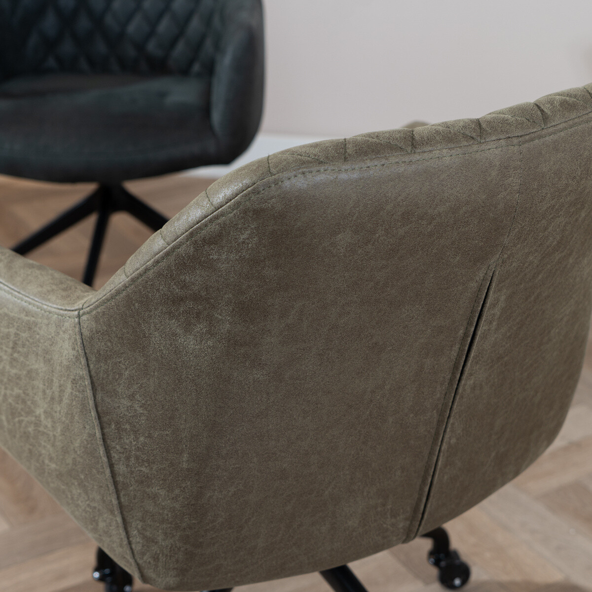 Eetkamerstoel met wieltjes Levi olijfgroen eco-leer