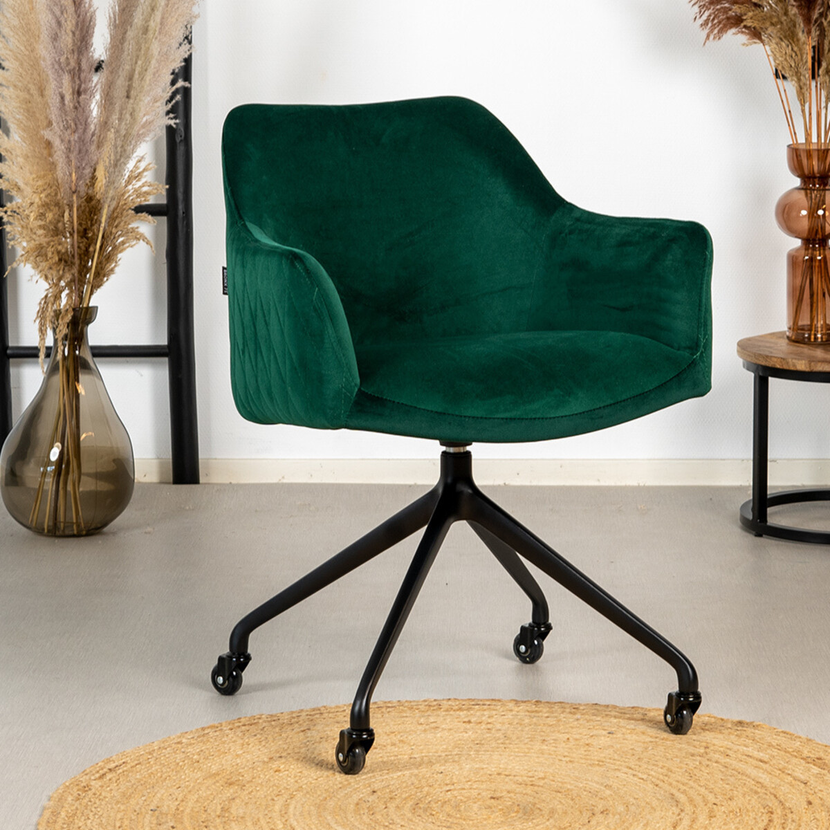 Eetkamerstoel met wieltjes Quinn donkergroen velvet