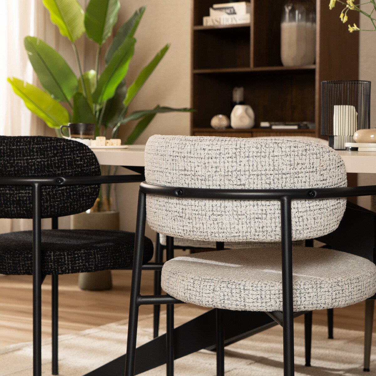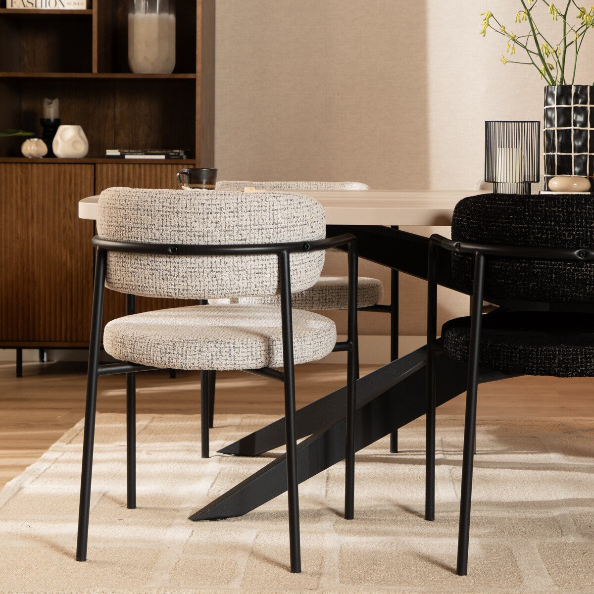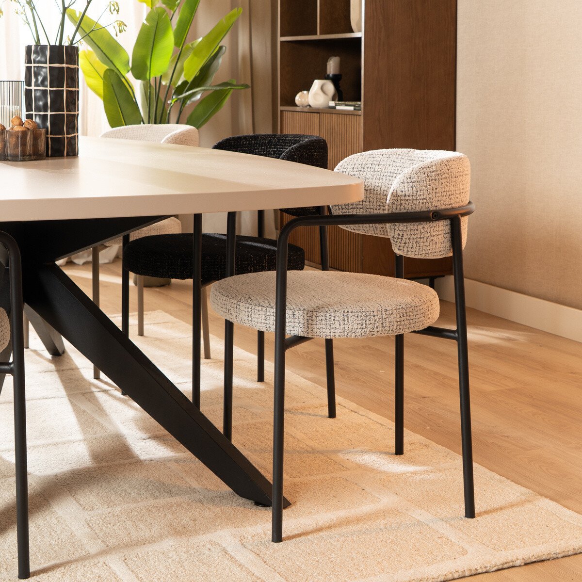 Eetkamerstoel Nicky gemêleerde stof off white/zwart