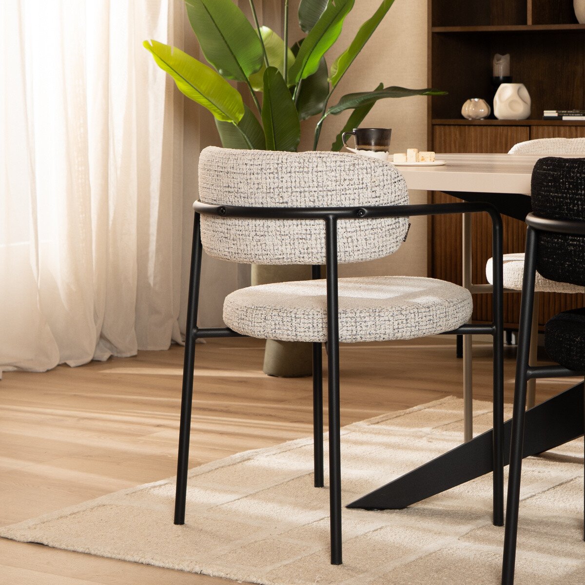 - De unieke ronde vormen maken deze stoel tot een echt statement aan de eettafel.