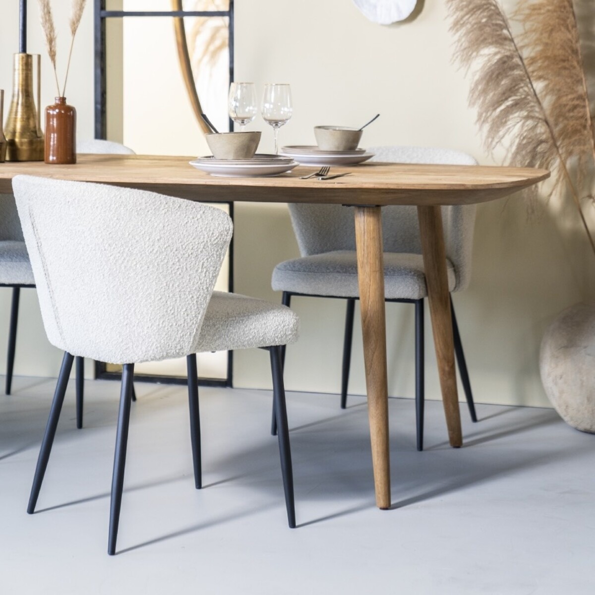 De Chico eettafel heeft een rechthoekige vorm en de hoeken zijn rond afgewerkt. Hiermee doorbreek je de rechte lijnen in het interieur en het staat ook nog eens heel gezellig in de ruimte! De poten kunnen gemakkelijk zelf worden gemonteerd en de poten lopen schuin naar beneden. Daarnaast kun je met zes tot acht mensen aan de eettafel zitten voor een heerlijk diner of een gezellige borrel.