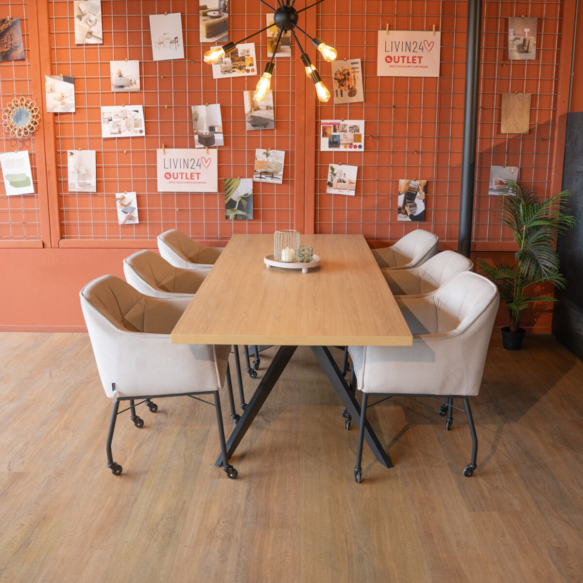 Het blad is sterk, kleurvast en slijtvast, de tafels zijn namelijk gemaakt van melamine. Dit materiaalsoort bestaat uit een geperste spaanplaat met een kunststof toplaag en is afgewerkt met een ABS-stootrand. Super stevig dus!
