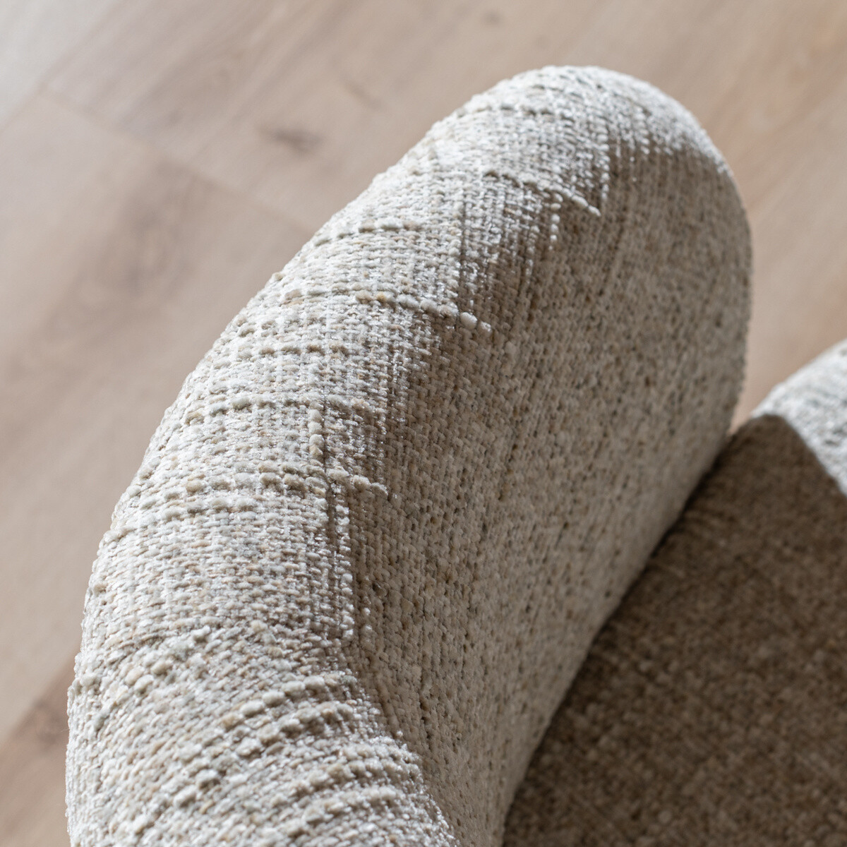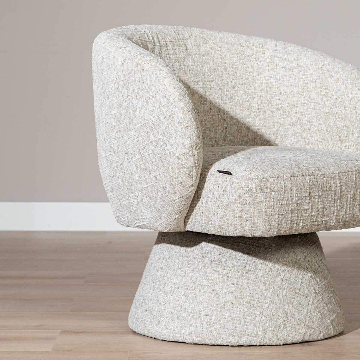 Fauteuil Lenn heeft een luxueuze uitstraling doordat de stof van de zitting doorloopt op de poot. Deze draaibare fauteuil biedt niet alleen een comfortabele zit plek, maar voegt ook een vleugje klasse toe aan je woonruimte. De zachte chenille bekleding voelt heerlijk aan en nodigt uit tot urenlang ontspannen.