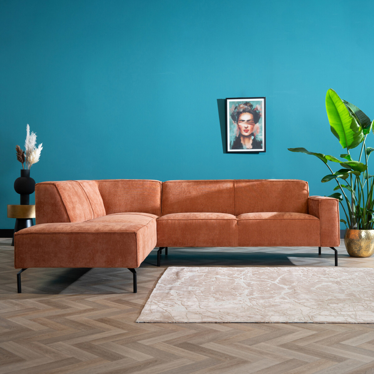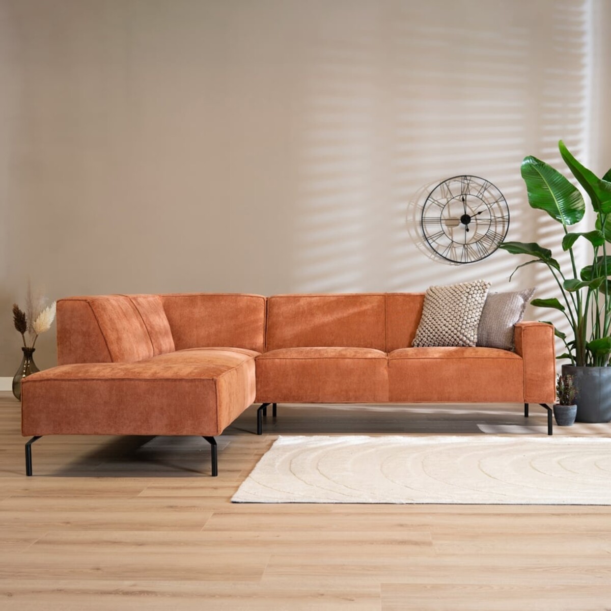 Hoekbank Kansas stof gemêleerd terracotta links