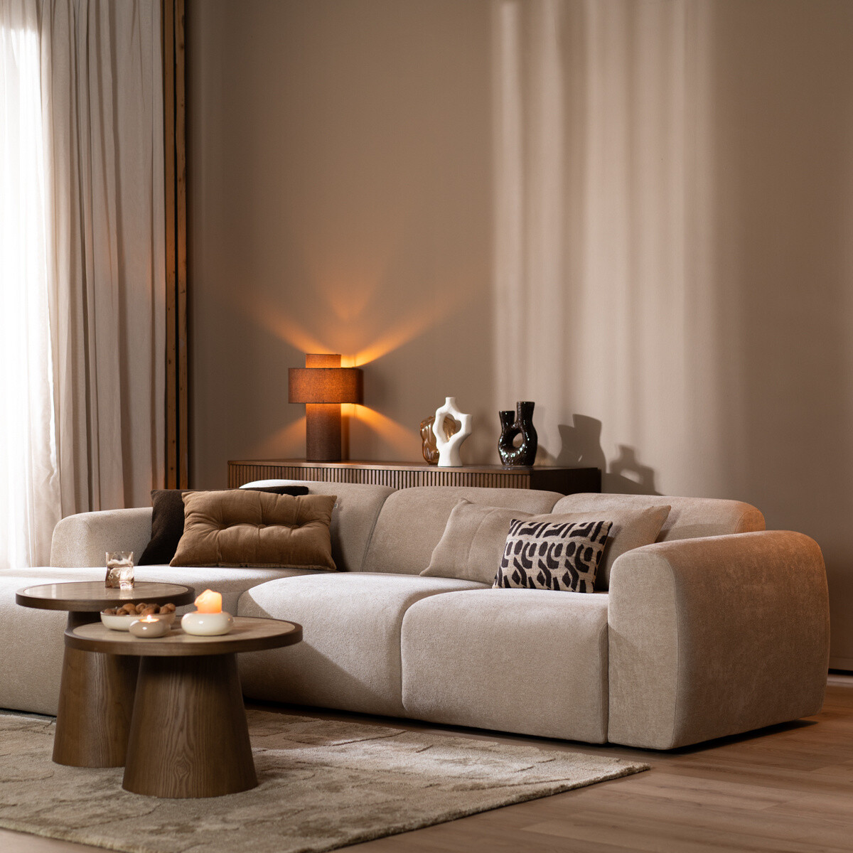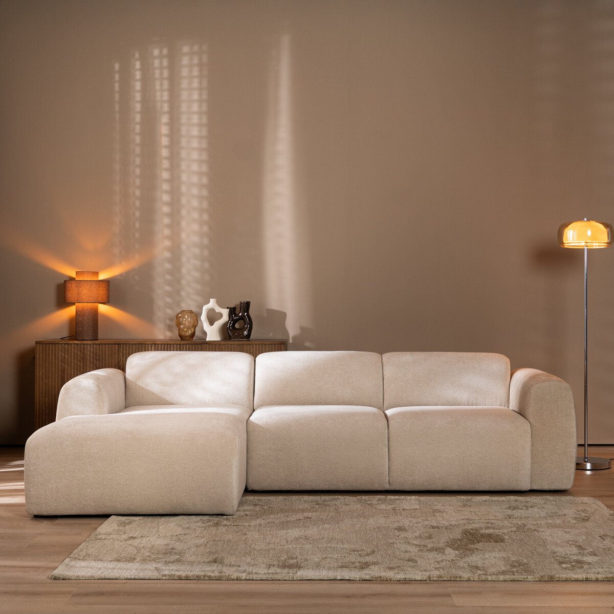 Hoekbank Maine is de perfecte balans tussen stijl en comfort, gemaakt van een fraaie chenille stof. Dankzij het veelzijdige ontwerp past de Maine moeiteloos in verschillende interieurs.