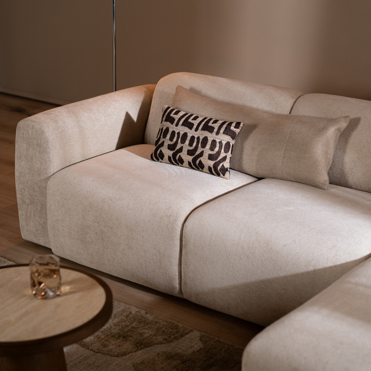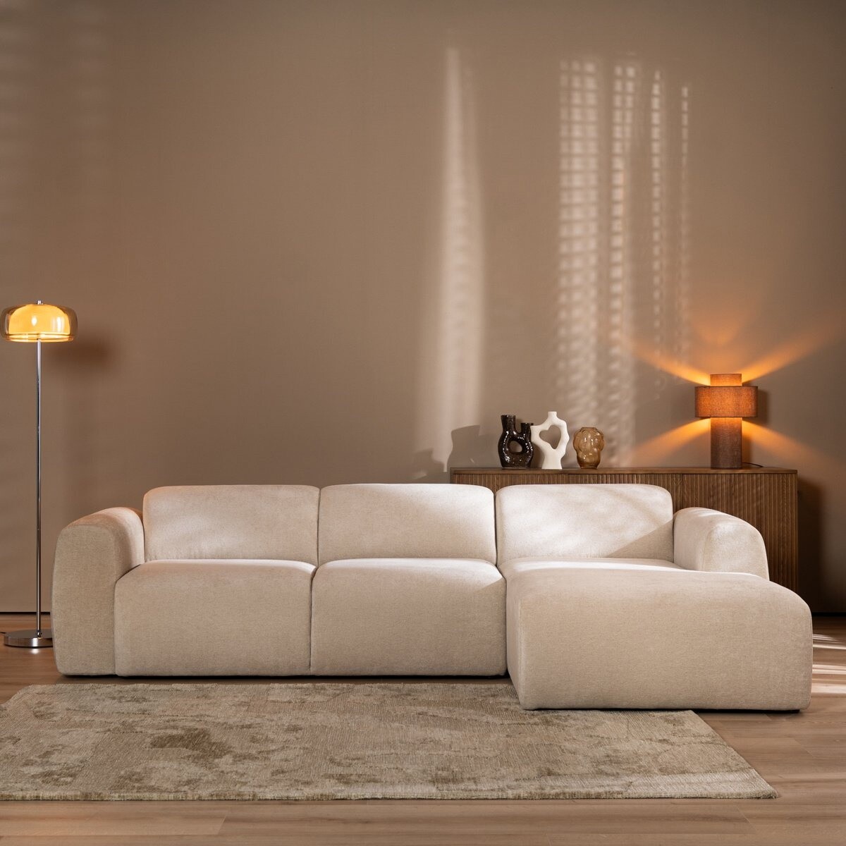 Hoekbank Maine is de perfecte balans tussen stijl en comfort, gemaakt van een fraaie chenille stof. Dankzij het veelzijdige ontwerp past de Maine moeiteloos in verschillende interieurs.