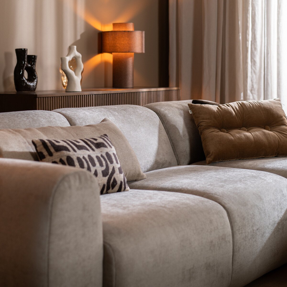 De zachte, afgeronde armleuningen geven de bank een uitnodigende uitstraling. Terwijl de brede en de door gestoffeerde zittingen tot aan de grond, zorgen voor een luxe en hoogwaardige afwerking. Deze doordachte details maken de Maine onmisbaar in jouw woonkamer.