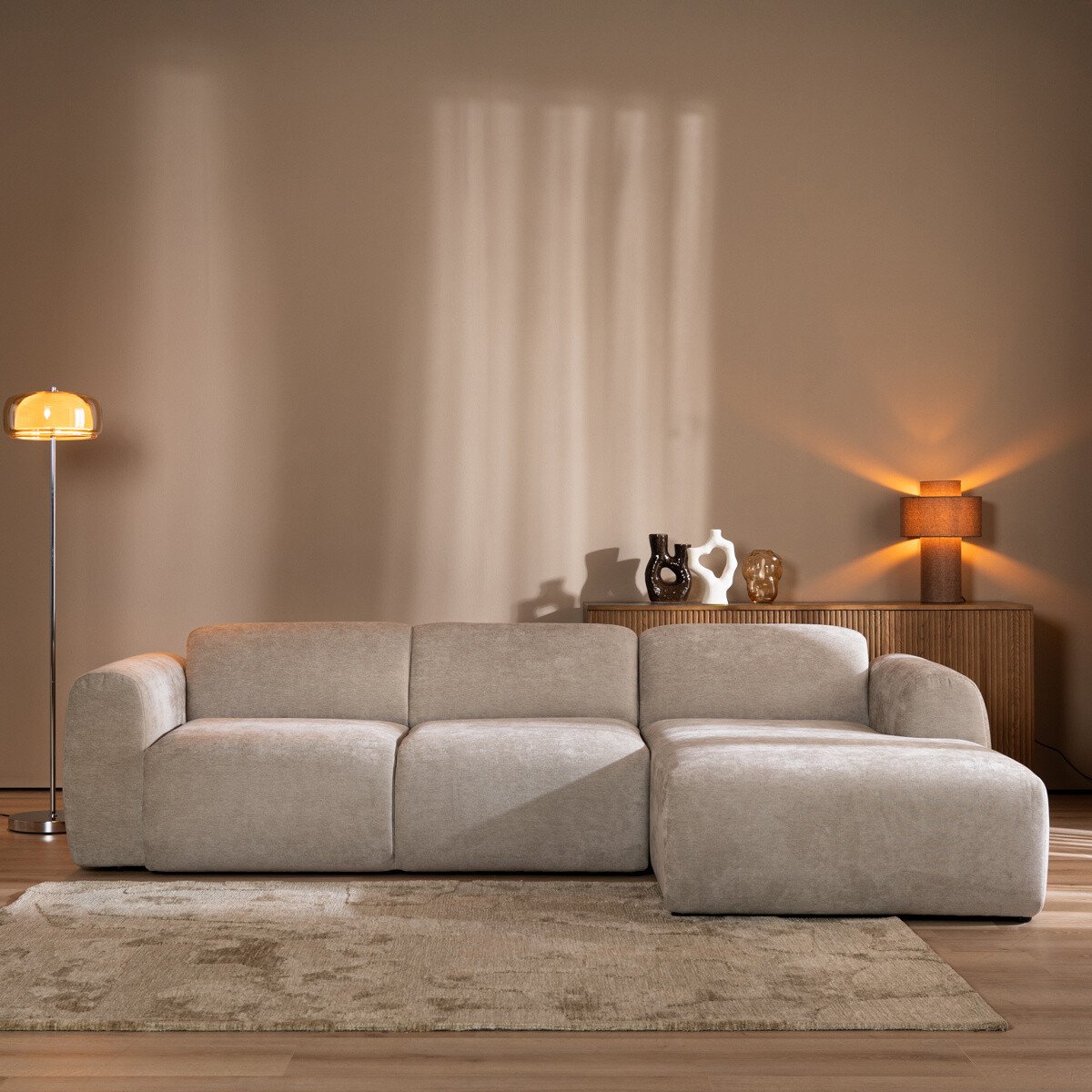 Hoekbank Maine is de perfecte balans tussen stijl en comfort, gemaakt van een fraaie gemêleerde stof. Dankzij het veelzijdige ontwerp past de Maine moeiteloos in verschillende interieurs.