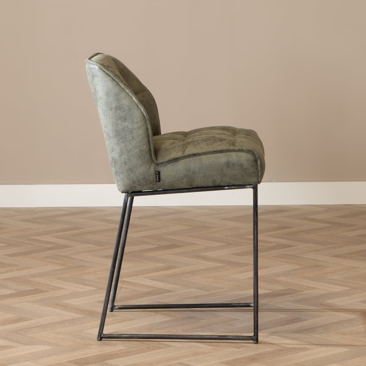De zitting is voorzien van nosag veren. Dit zorgt voor een hoog zitcomfort en voorkomt dat de stoel op den duur inzakt. Het onderstel is gemaakt van zwart gepoedercoat metaal en heeft een subtiele uitstraling. Het materiaal is erg sterk waardoor de kruk erg stevig staat.