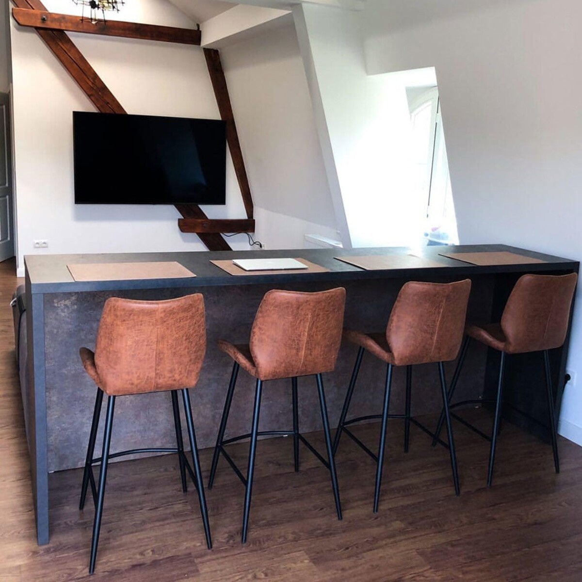 De industriële barkruk Barrel is de perfecte barkruk voor een stoer en industrieel interieur. Dankzij de combinatie van de zitting gemaakt van hoogwaardig eco-leder en het zwart stalen frame is deze barkruk geschikt voor meerdere interieurstijlen zoals in een industrieel, maar ook in een Scandinavisch interieur!