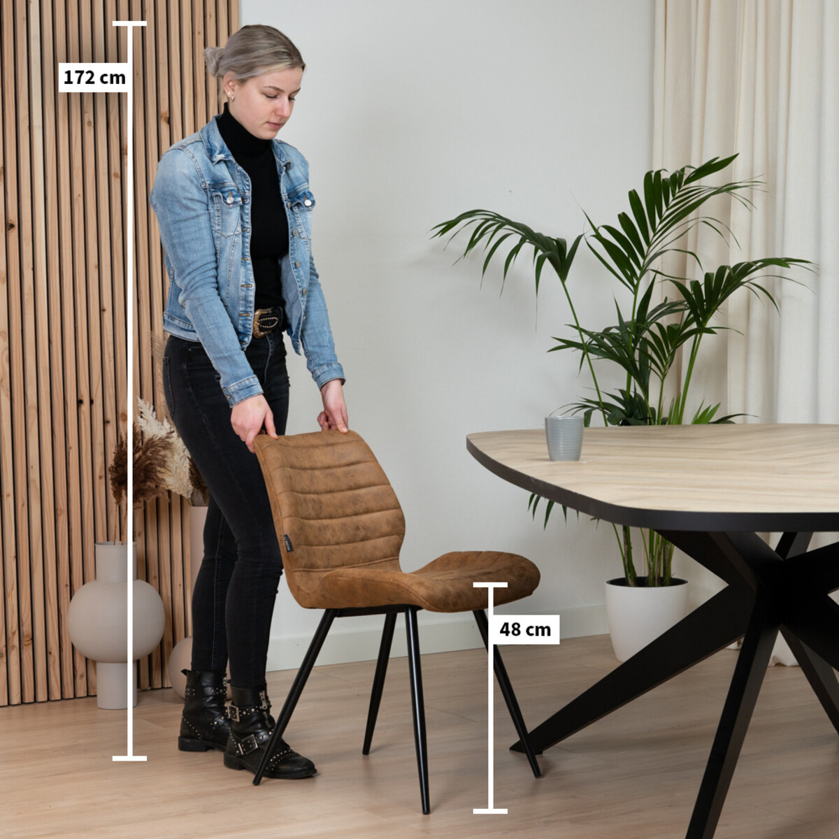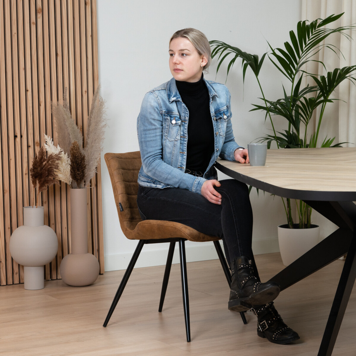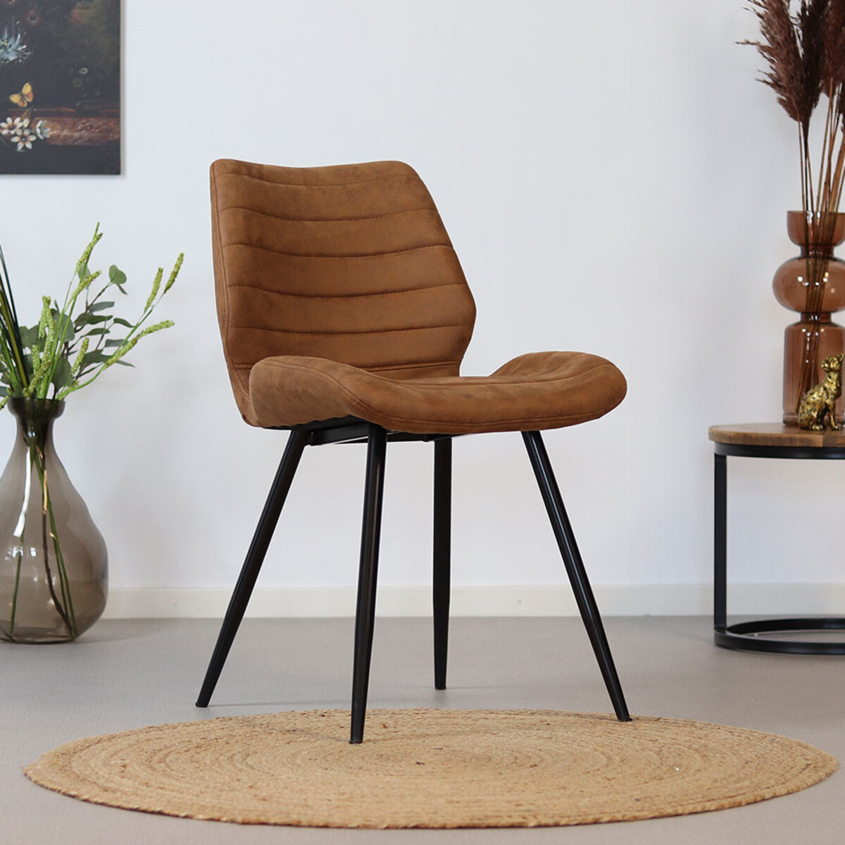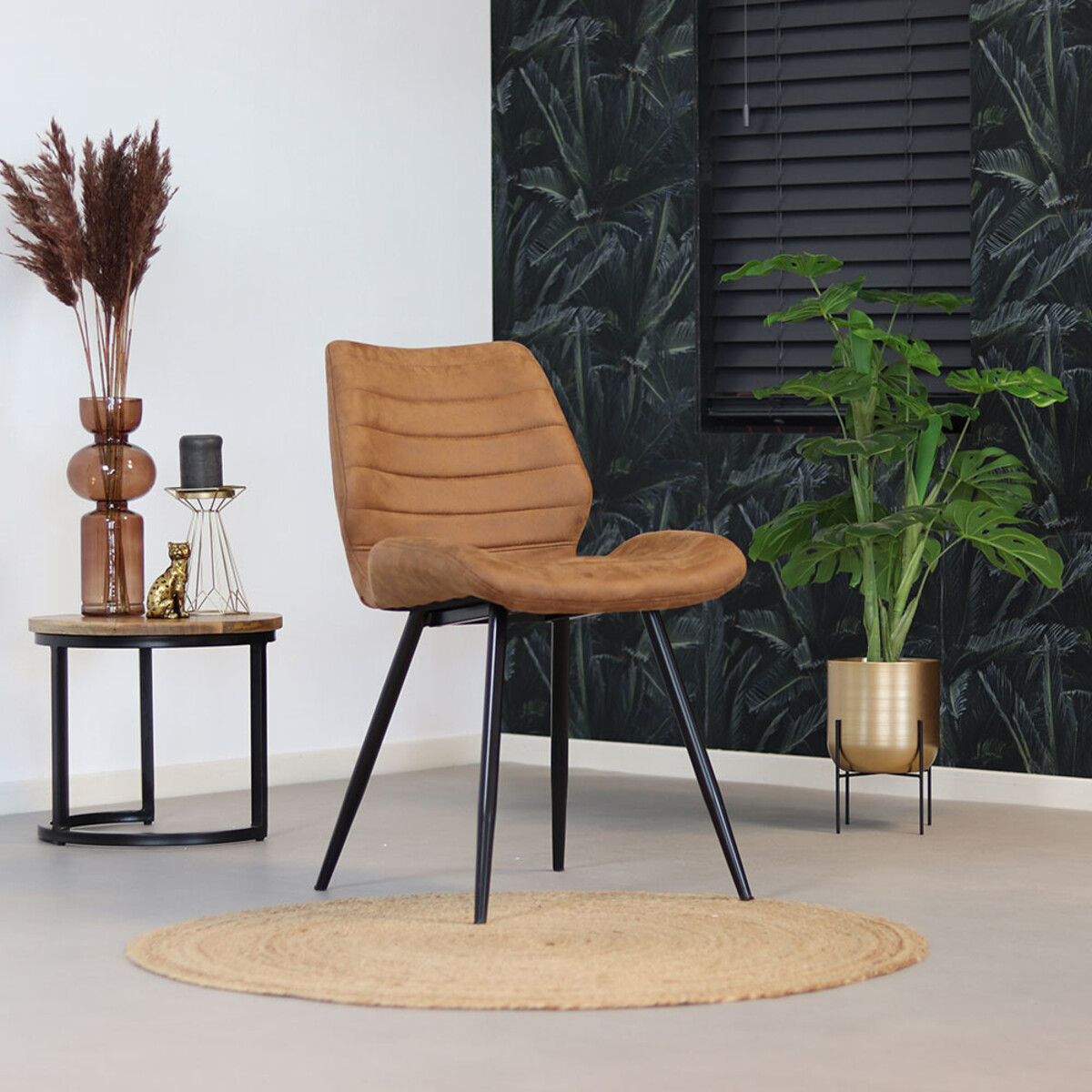 Het frame van de eetkamerstoel is gemaakt van zwart metaal wat zorgt voor een extra stoere touch! Door de combinatie van materialen past de eetkamerstoel perfect in zowel een industrieel interieur als een modern interieur! De Morris eetkamerstoel is verkrijgbaar in de kleuren antraciet en cognac.