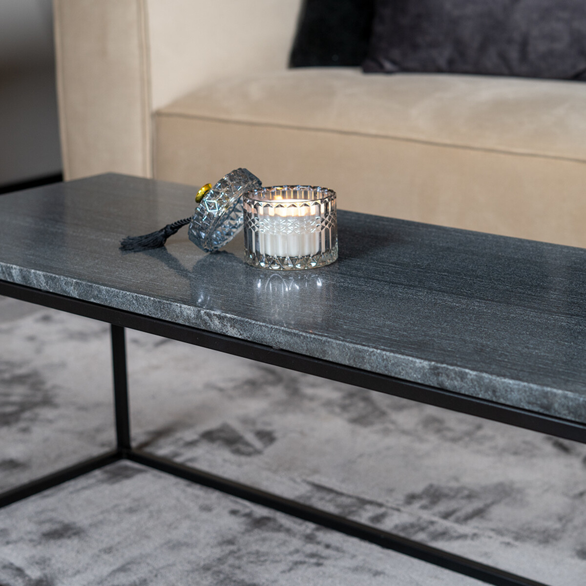 Salontafel marmer Roxy heeft een afmeting van 94 x 38 centimeter en daardoor geschikt voor verschillende ruimtes. De salontafel Roxy heeft een marmeren tafelblad. Marmer kenmerkt zich door kleurschakeringen en aders en heeft een kristalstructuur wat zorgt voor een luxe en chique uitstraling. Doordat marmer een natuurproduct is, krijgt iedere tafel een eigen, unieke uitstraling. Daarnaast heeft de tafel een zwart metalen onderstel.