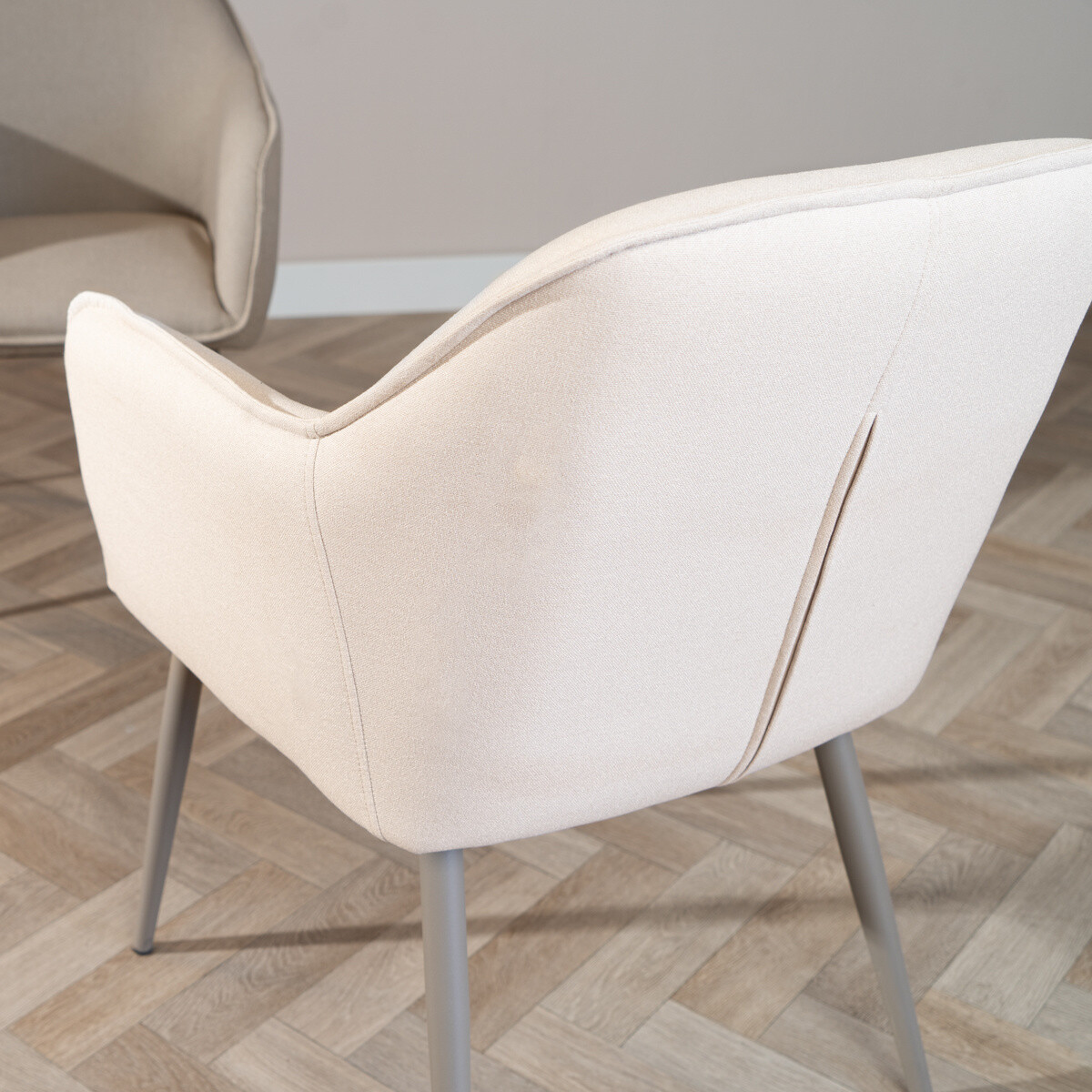 Scandinavische eetkamerstoel Elin is verkrijgbaar in de kleuren beige en taupe die goed met elkaar te combineren zijn.
