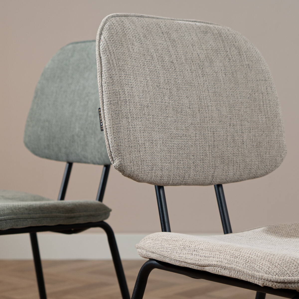 Scandinavische eetkamerstoel Ivar is verkrijgbaar in de kleuren groen, beige en taupe.