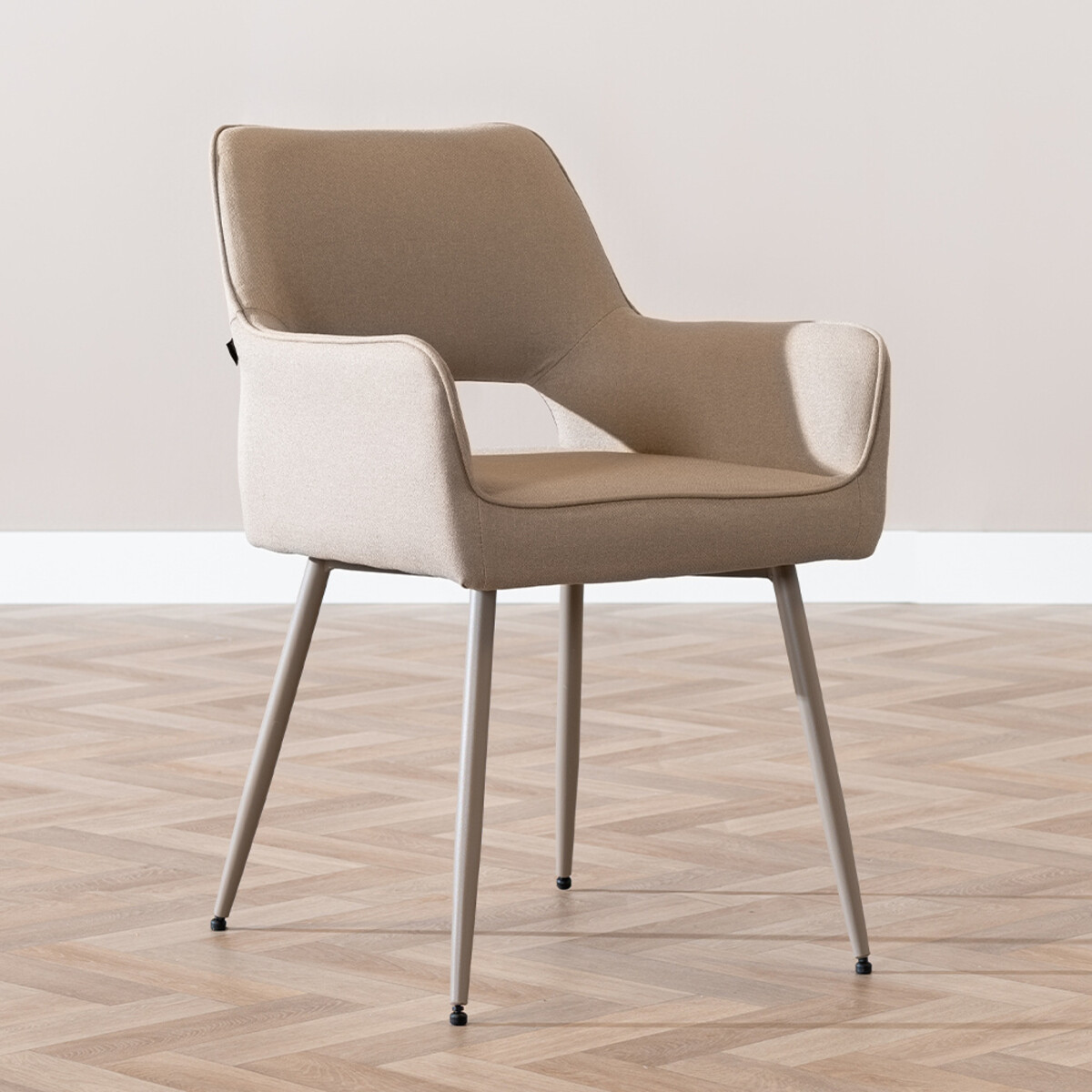 Het unieke aan de Olivia eetkamerstoel is dat het frame is uitgevoerd in een taupe kleur. Dit zorgt voor rust, eenvoud en speelt helemaal in op de huidige interieurtrend. Het frame is gemaakt van gepoedercoat metaal en matcht zo perfect met de zitting.De stoel Olivia heeft door de dichte armleuningen niet een heel breed zitvlak. Dit doet echter niks af aan het zitcomfort van deze stoel!