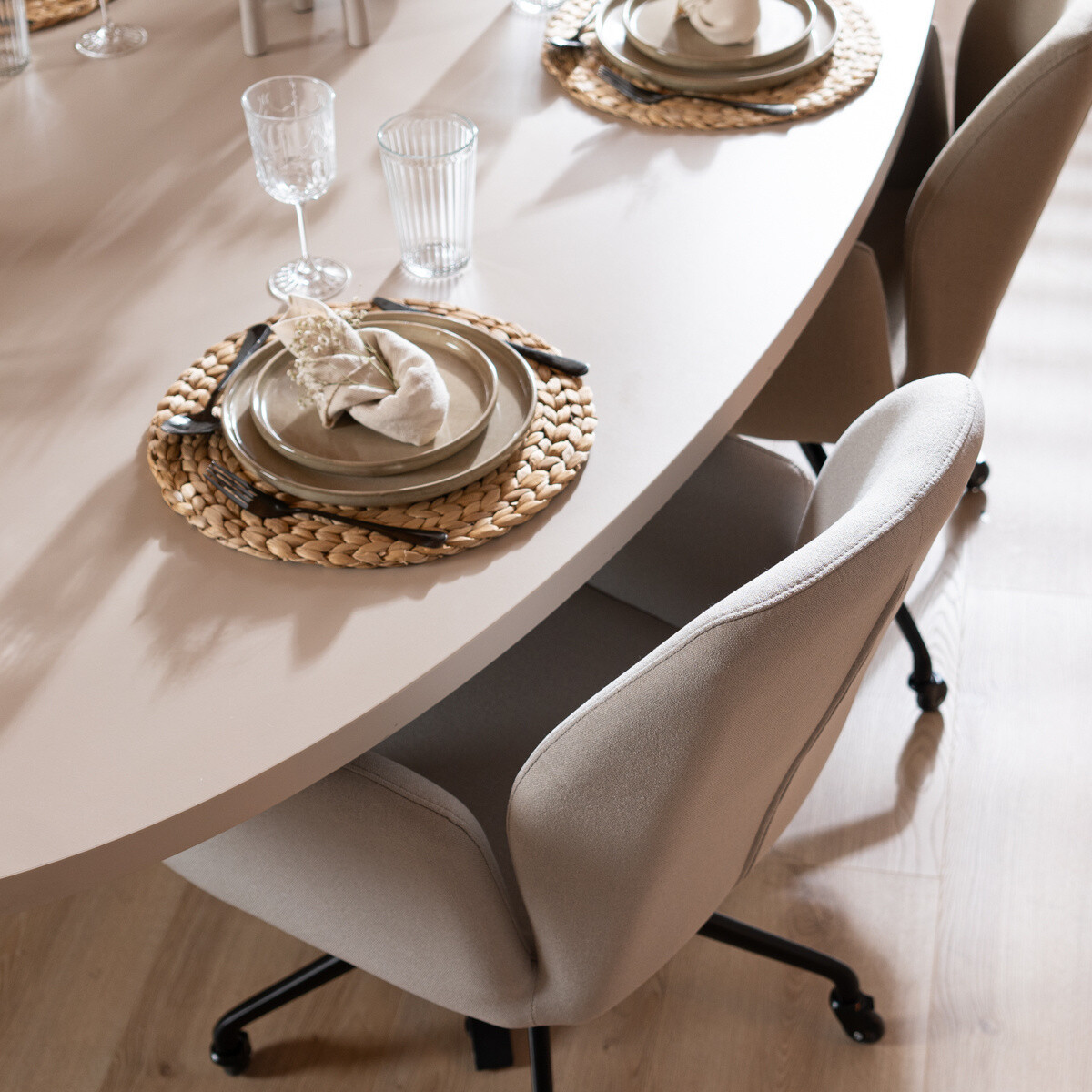 De Scandinavische eetkamerstoel Runa is een stoel op wieltjes. Hierdoor kun je de stoel, maar ook jezelf wanneer je in de stoel zit, makkelijk verplaatsen. De medium harde skatewieltjes maken de stoel zeer geschikt voor verschillende vloeren zonder dat deze sporen achterlaat. Zo kun je deze stoel met een gerust hart plaatsen op welke vloer dan ook. Daarnaast maken deze wieltjes geen tot weinig geluid wanneer je rolt over de vloer. Dit in tegenstelling tot hardere wieltjes.