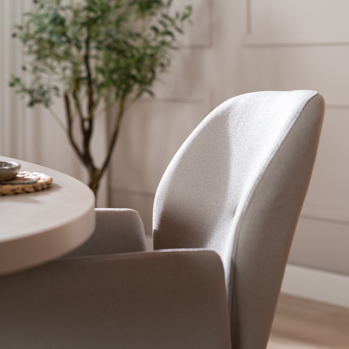 Eetkamerstoel Runa is een comfortabele stoel met een Scandinavisch design. De stoel is op de duurzame wijze geproduceerd. De stof is namelijk gemaakt van 100% gerecyclede plastic flessen. Doordat de stoel is voorzien van skatewieltjes is deze stoel mobiel en makkelijk te verplaatsen. De stoel is voorzien van een hoge rugleuning in combinatie met armleuningen. Hierdoor wil je niets liever dan lang blijven zitten in deze comfortabele stoel.