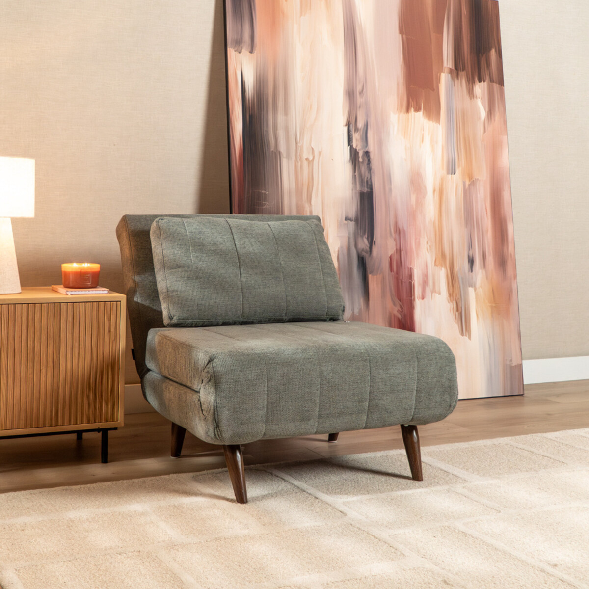 Slaapfauteuil Hanna is bekleed met een polyester stof en wordt gekenmerkt door een Scandinavische look. Je tovert de Hanna van een handomdraai om naar een fauteuil of een bed. Deze multifunctionele fauteuil is ideaal voor wanneer er een logé langskomt, daardoor maakt de Hanna van elke kamer probleemloos een gezellige logeerkamer.