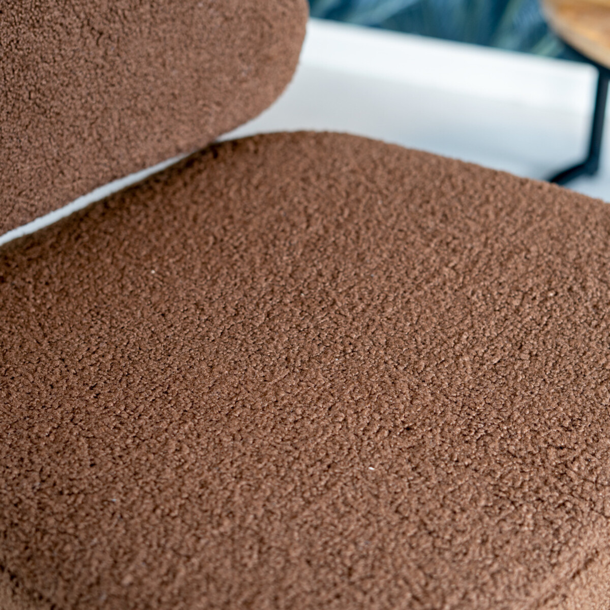 De zitting van de Julia fauteuil is gemaakt van teddy stof. Deze is gemaakt van polyester in combinatie met acryl. Deze combinatie bootst de geplooide en gladde structuur van echt bont na. Fauteuil Julia heeft een opvallend gepoedercoat zwart metalen onderstel. Julia mag dan een subtiele zitting hebben, maar dat neemt niet weg dat de fauteuil heerlijk zit. Deze fauteuil is perfect voor een gezellig avondje met vrienden en familie.
