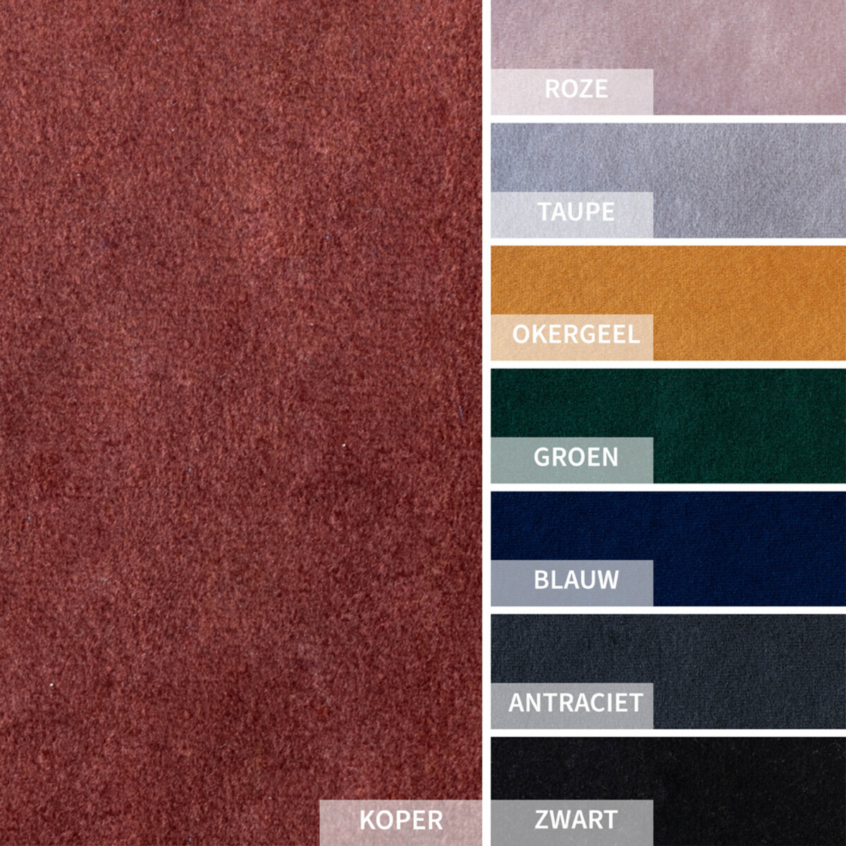 Velvet barkruk Frenkie is verkrijgbaar in de kleuren blauw, groen, zwart, taupe, roze, zwart en koper. Frenkie heeft een Martindale score van 70.000. Dit betekent dat de stof zeer slijtvast is. Liever een barkruk in dezelfde stijl, maar dan met vier poten? Bekijk dan eens barkruk Mikky!