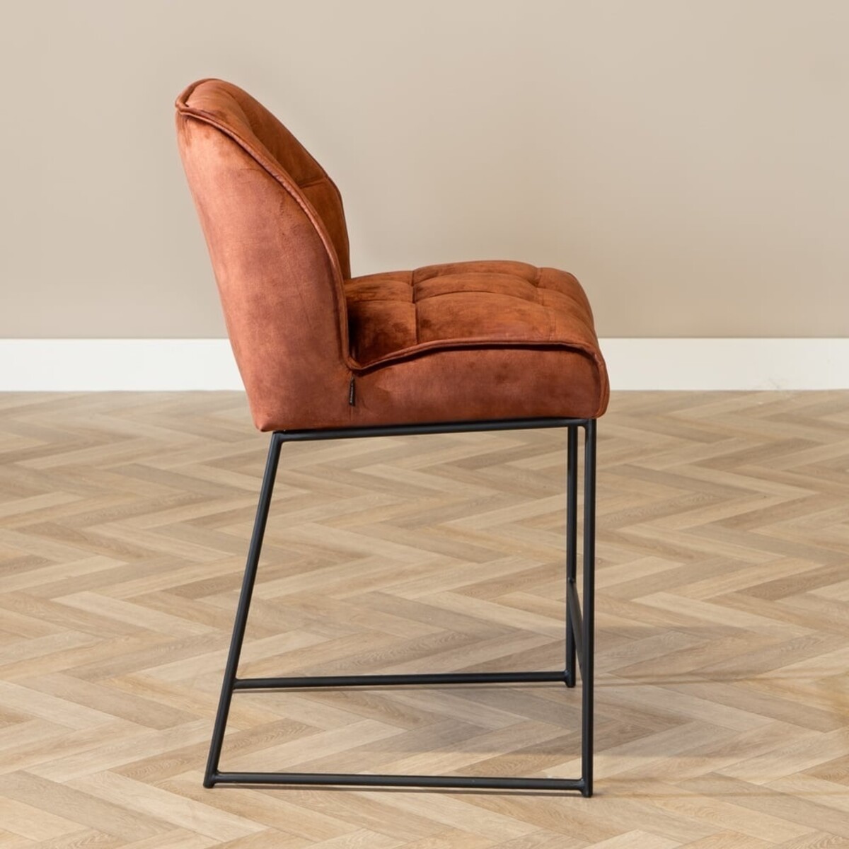 Barkruk Janna is bekleed met een velvet stof met een luxueuze uitstraling. Doordat deze stof waterafstotend is, is het geen probleem als er per ongeluk een drankje overheen valt. De vloeistof kun je dan gewoon van de stof deppen en de stof blijft mooi. Plaats de barkruk bij een kookeiland of bar en breng vele uren door samen met familie/vrienden, het hoge zitcomfort maakt dit namelijk mogelijk.