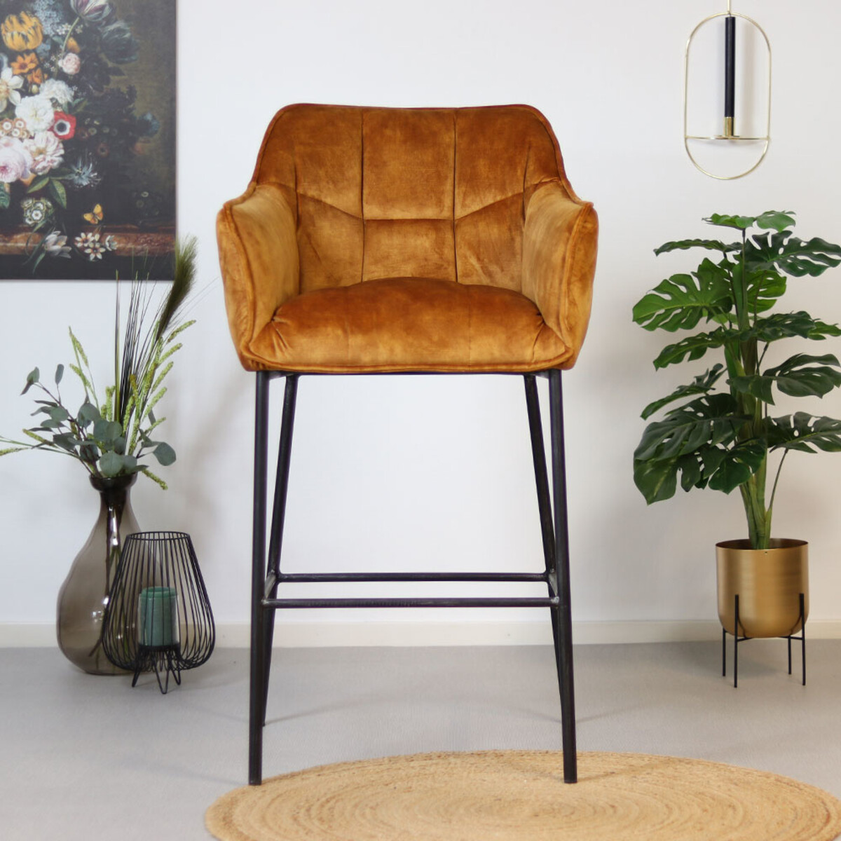 Velvet barkruk Jayron okergeel/ cognac 82 cm