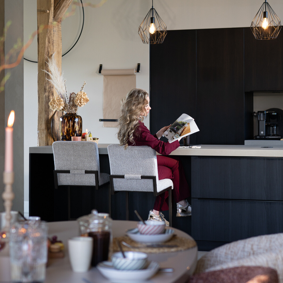 - Het frame wordt als mooi element doorgetrokken naar de achterkant van de barkruk.