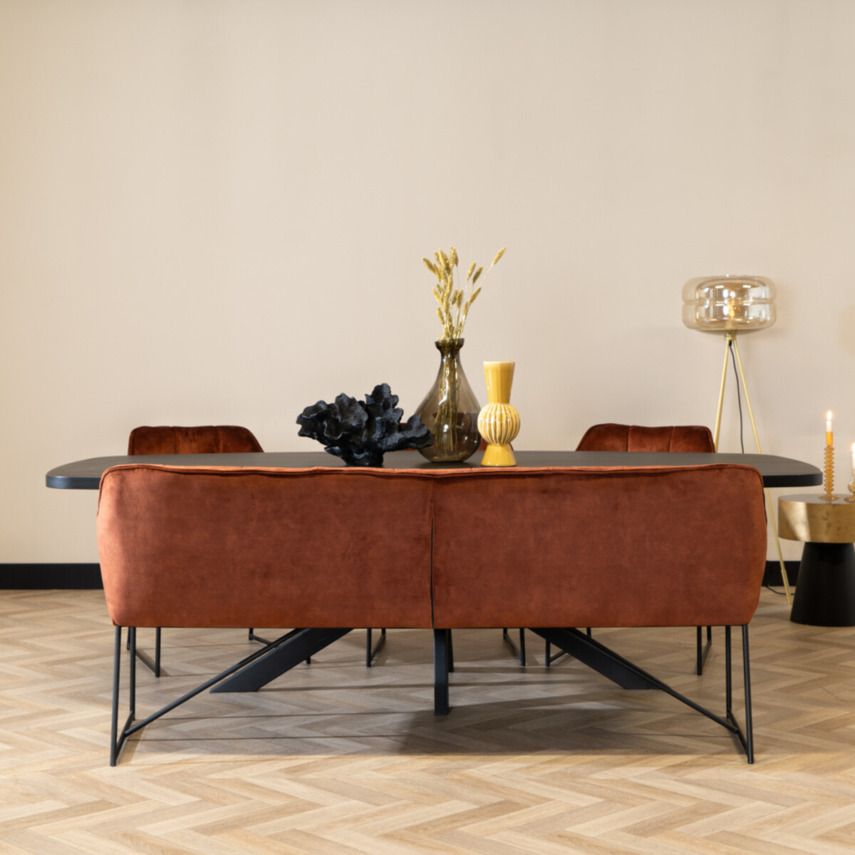 Tip: Meet de afstand tussen de tafelpoten goed op, zo weet je zeker dat eetkamerbank Janna 185 cm hier tussen past.