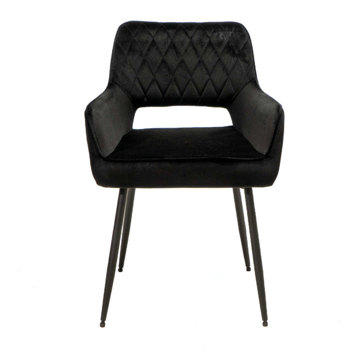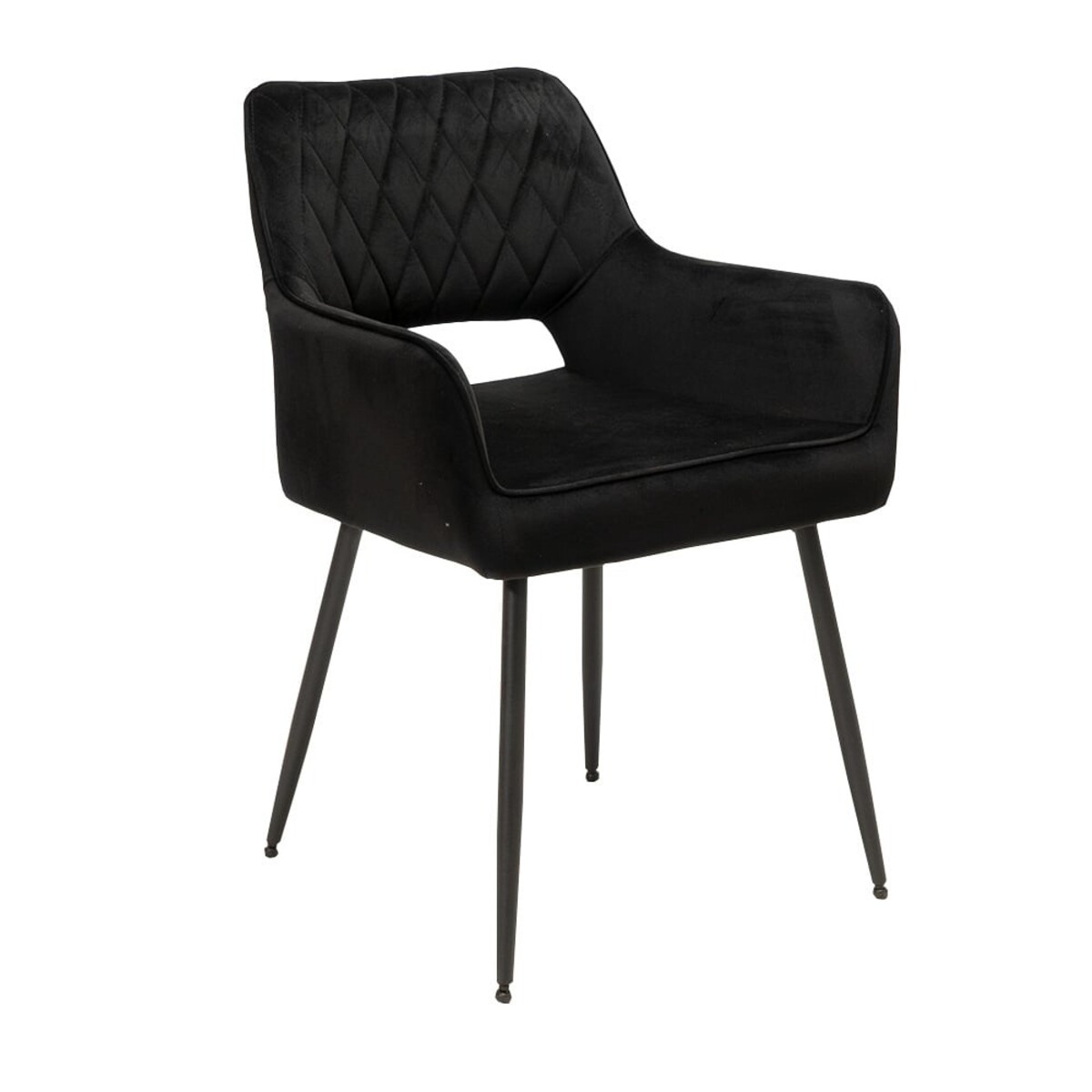 De Mika eetkamerstoel velvet heeft een mooie zitting met modern ruitpatroon. De eetkamerstoel Mika heeft armleuning met een uitsparing in de rugleuning. Dit geeft een modern, speels effect aan de stoel. De luxe stof van de eetkamerstoel heeft een martindale score van 70.000, wat betekent dat de stof heel slijtvast is! Daarnaast is de velvet stof waterbestendig, wat de stoel perfect maakt voor ieder interieur. Het frame van de eetkamerstoel is gemaakt van zwart metaal wat van binnen naar buiten loopt. De eetkamerstoel Mika is verkrijgbaar in de kleuren zwart, taupe, okergeel, koper, antraciet, donkergroen en donkerblauw.