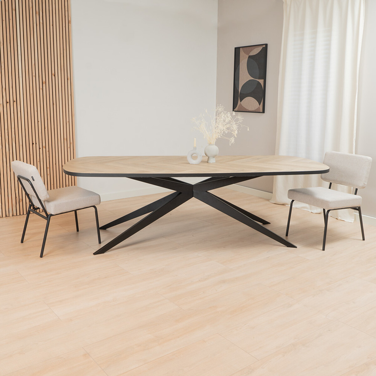 Visgraat eettafel Deens ovaal Ingo PVC 280 x 110 cm