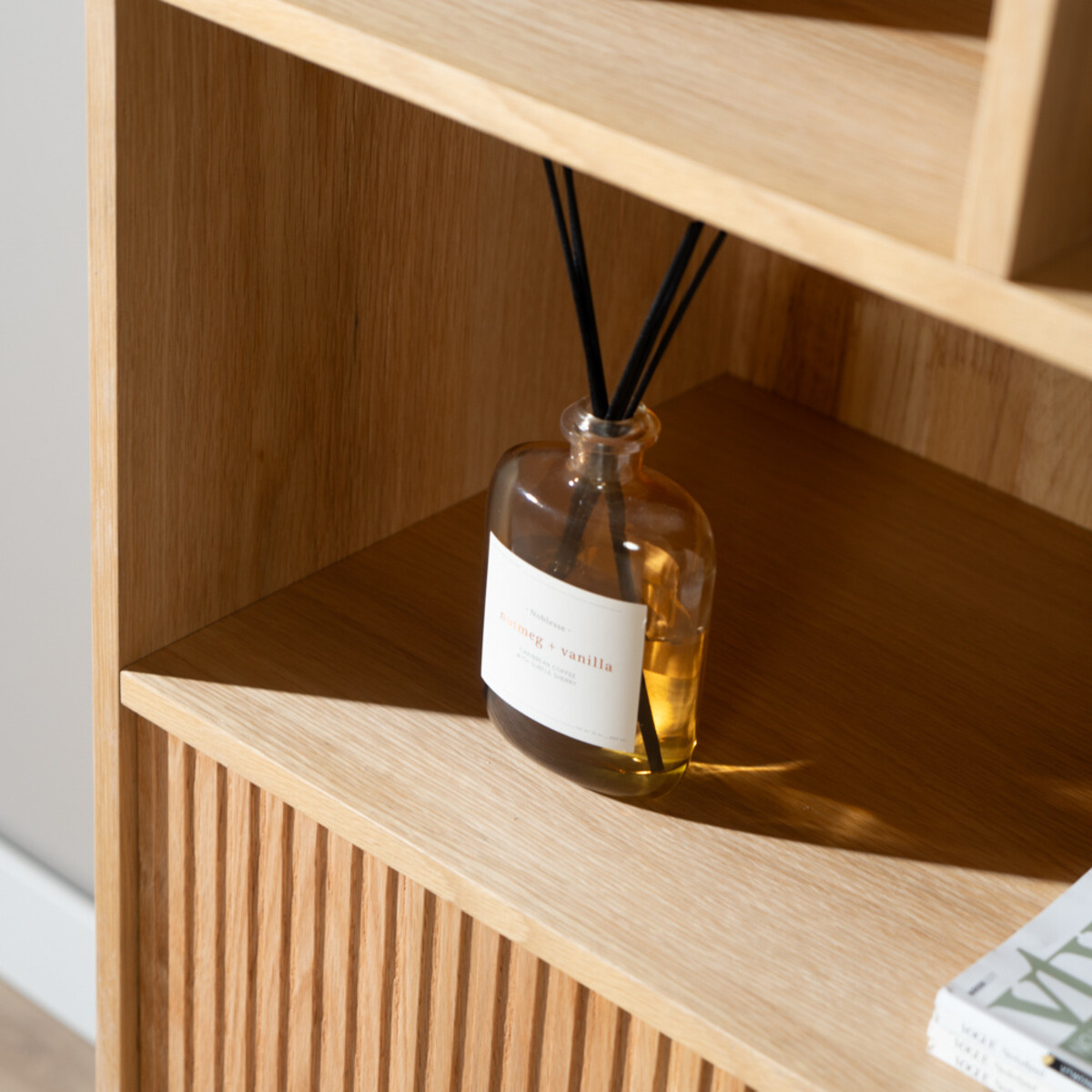 De kast is gemaakt van rubberwood, oftewel rubberhout, en bekleed met eikenfineer. Rubberhout is één van de meest ecologische houtsoorten. Rubberbomen worden eerst gebruikt voor de productie van rubber en pas wanneer deze productiecyclus volledig afgelopen is, wordt het hout dat overblijft gebruikt om meubels en andere voorwerpen van te maken. De dunne laag eikenhout waarmee het meubel is afgewerkt, geeft de kast een robuuste uitstraling.
